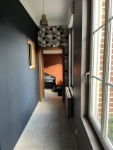 A l'étage : Côté salon, un escalier qui dessert une grande chambre avec un accès au grenier. Côté buanderie, un escalier qui dessert un palier et une grande chambre avec salle d'eau.